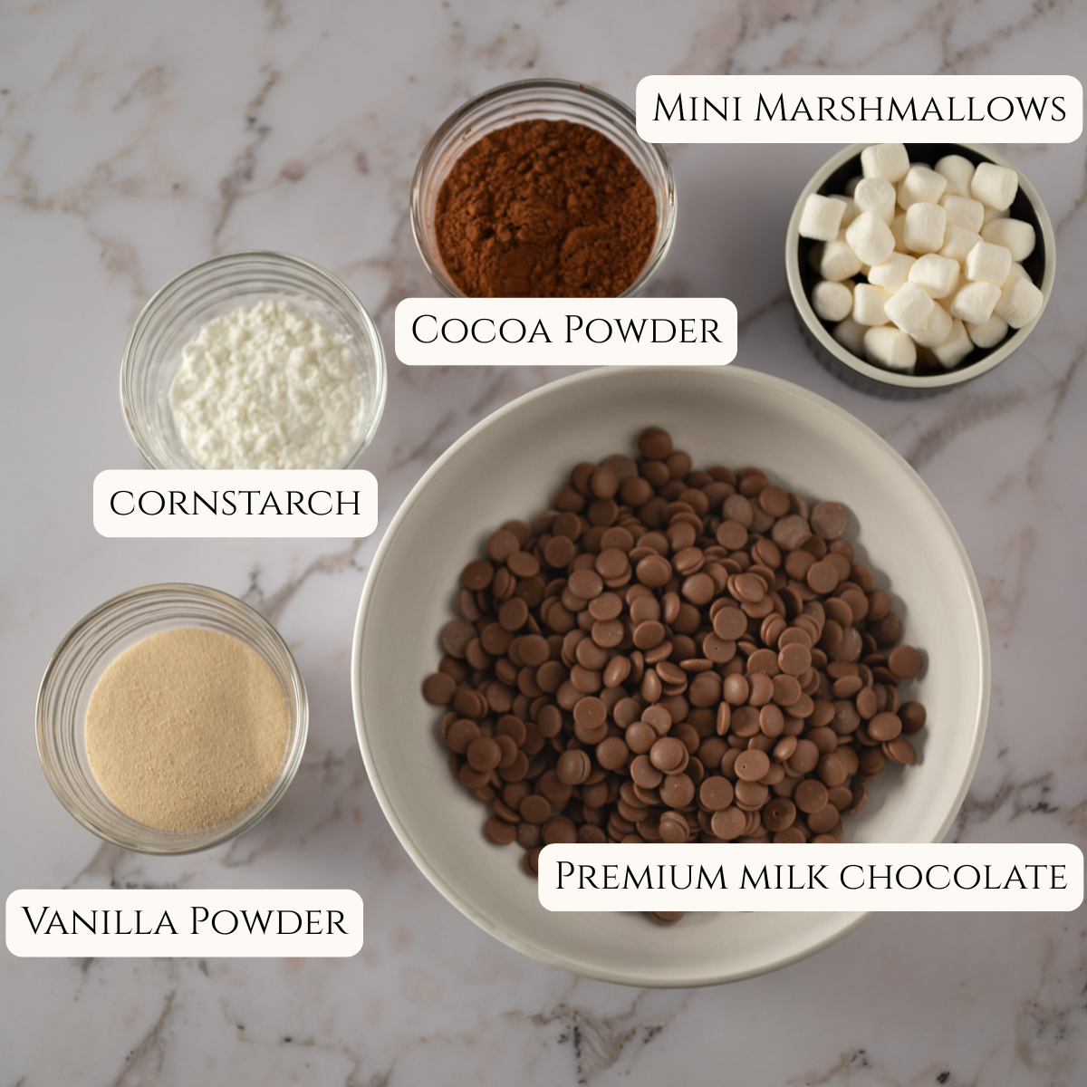 This homemade hot cocoa mix comes together with just 5 ingredients! They are: